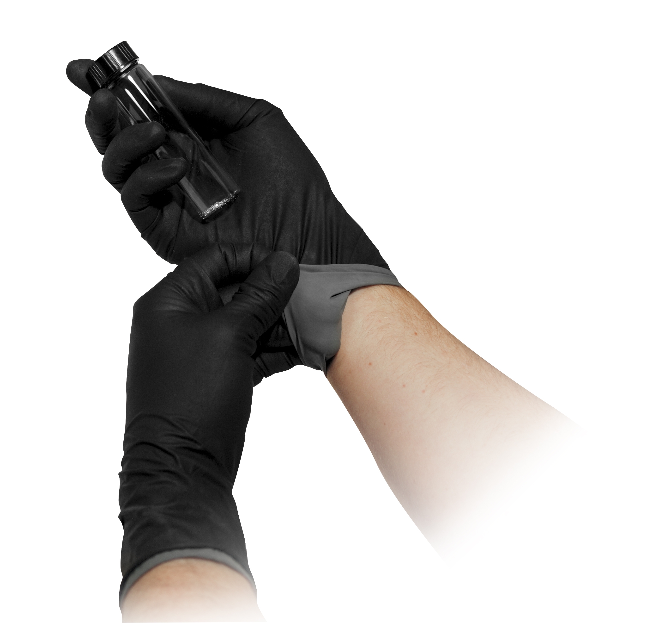 These extra thick nitrile gloves (8.25 mil at fingertips) provide superior chemical resistance and barrier protection. The Apex Pro XP100 powder-free and latex-free nitrile exam gloves deliver proven protection for some of the toughest crime scene situations. They feature a unique black & gray color combination which allows powders to be seen on either side of the glove. They also feature an extended cuff for added protection.